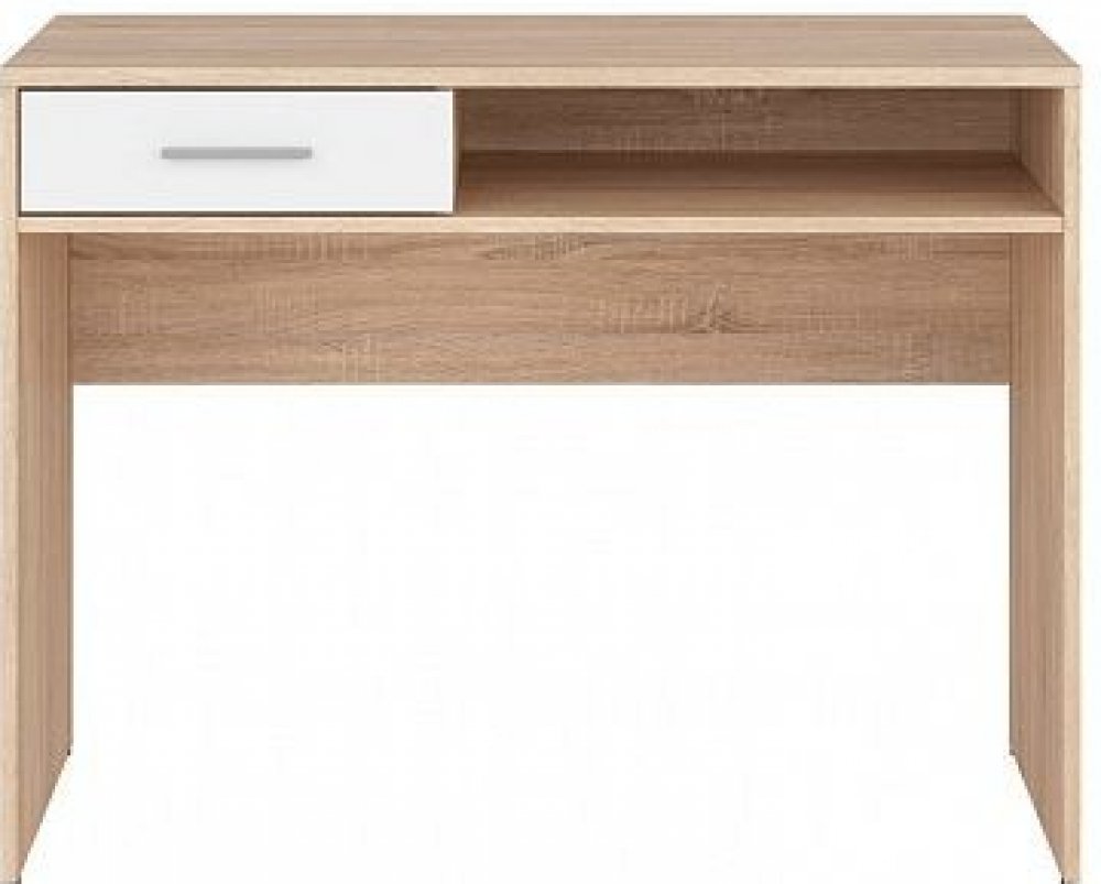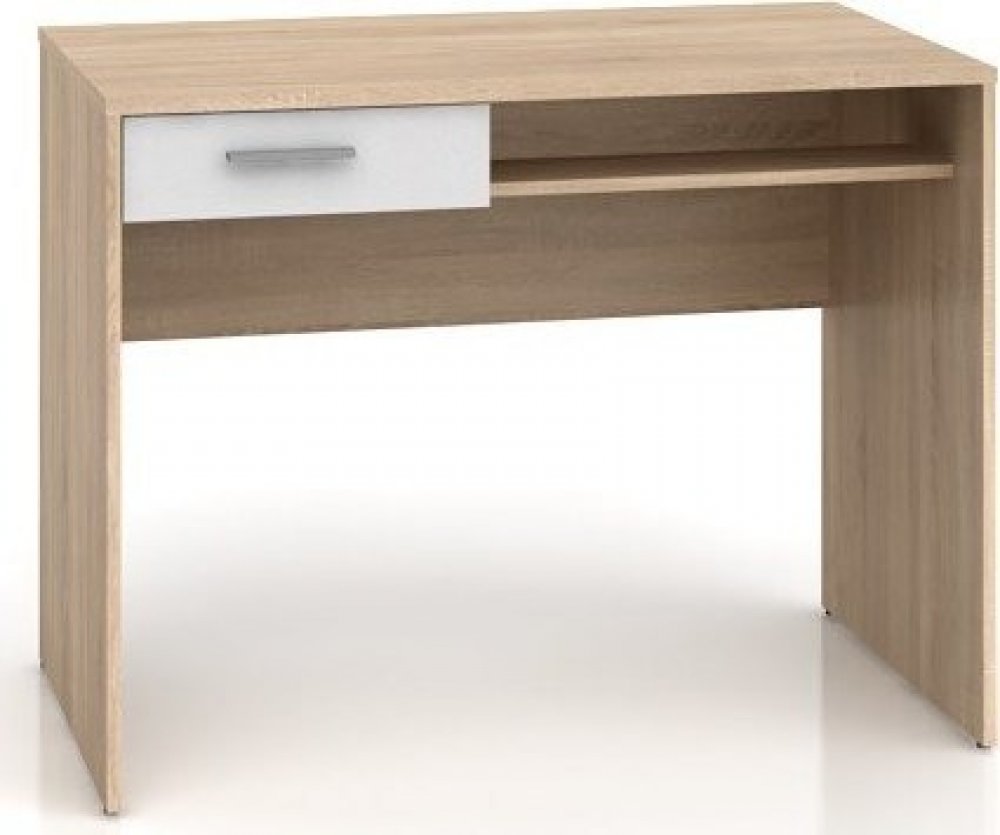 Jednoduchý psací stolek BIU1S je vyroben z dřevotřísky, obsahuje 1 zásuvku a 1 pevnou polici. Zásuvka je na válečkových kolejničkách.