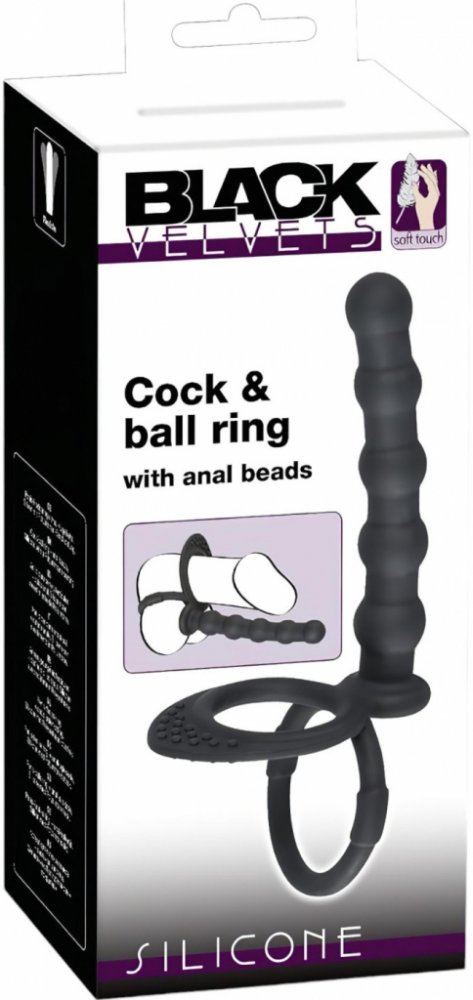 Anální dildo s kroužkem na varlata a penis, který ti zajistí silnější erekci a zároveň skvěle vyplní zadeček! Při sexu bude vagina působit užší a malé kuličky na kroužku stimulují klitoris. Proč je to super? Příjemný, prémiový silikon šetrný k pokožceSametově hebký povrchKroužek na varlata i penis pro extra pevnou erekciAnální dildo s kuličkami pro intenzivní stimulaciKroužek na varlata drží vše přesně na místěNavrženo pro použití během sexuálního stykuÚplně voděodolné - můžeš používat i ve sprše či vaněNa co myslet: Používej jen lubrikační gel na vodní báziPřed i po použití důkladně umyjNenos ho v kuse déle než 30 minutPokud pocítíš nepohodlí, ihned sundejJak používat: Naneste trochu lubrikantu na vodní bázi na povrch pomůcky.Opatrně navlékni kroužek na penis i varlata na správné místo.Anální část vkládej pomalu a podle svých pocitů.Po použití důkladně umyj vlažnou vodou a mýdlem.Obsah balení: 1 kus Black Velvet análního dilda s kroužkem na penis a varlataVlastnosti produktu: Celková délka: 19 cm (řetízek s kuličkami + kroužek)Délka análního dilda: 12,5 cmVnitřní průměr kroužku na penis: 3,8 cm (pružný)Tloušťka kroužku na penis: 1 cmMateriál: Silikon s PU povrchem (bez ftalátů, podle předpisu EU)Barva: černáDoporučení k čištění: Opláchnout důkladně jemným mýdlem a vlažnou vodou, nechat oschnout. Doporučujeme používat speciální čistič (8718627520062) - lze doobjednat.