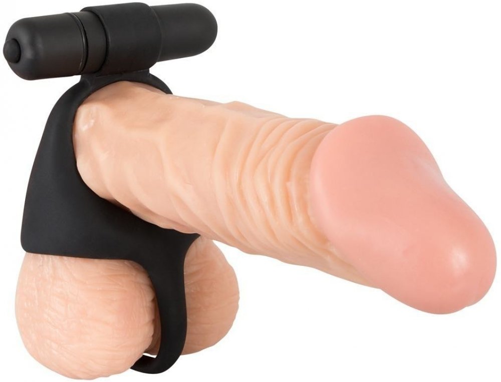 Black Velvets vibrační erekční kroužek s návlekem na varlata