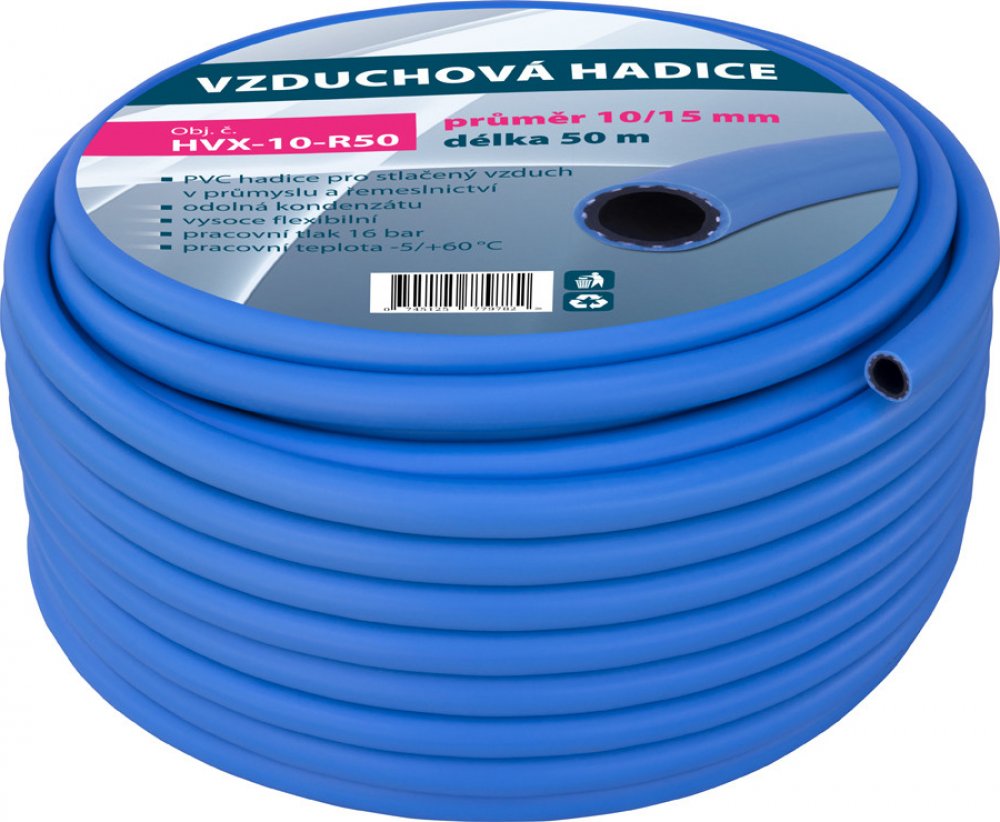 - hadice pro stlačený vzduch vyrobená ze speciální verze PVC odolávající vlivu kondenzátu