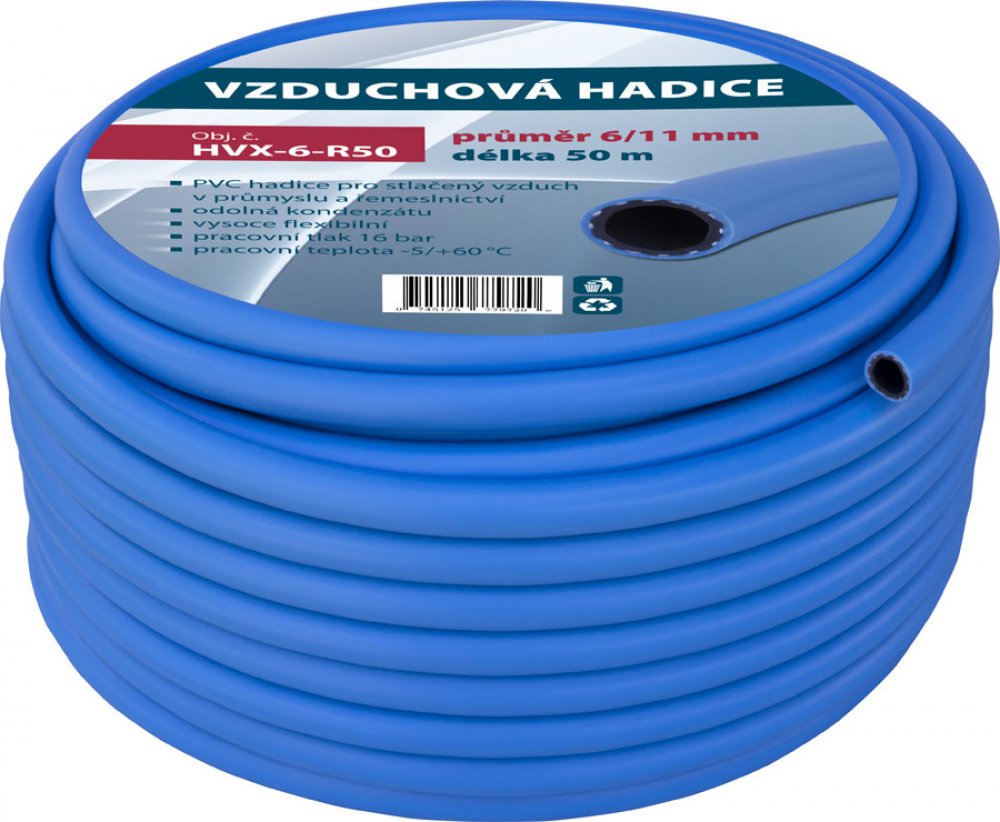 - hadice pro stlačený vzduch vyrobená ze speciální verze PVC odolávající vlivu kondenzátu