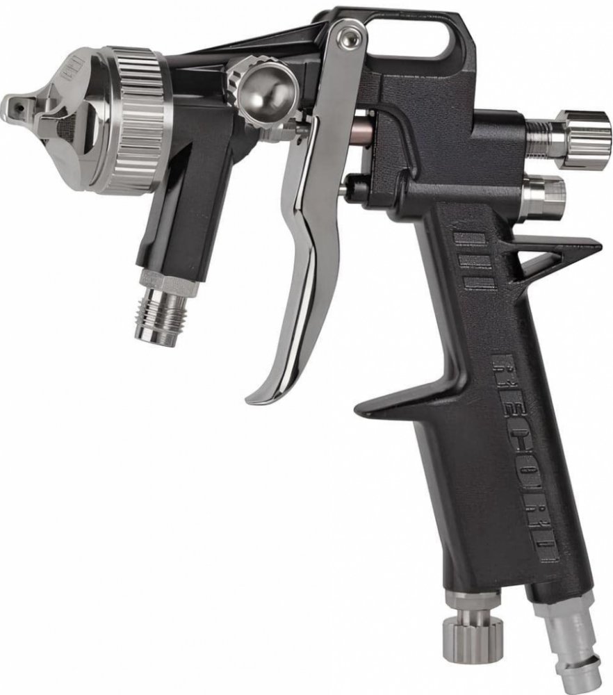 Pistole je vybavena precizní regulací barvy, vzduchu a tvaru paprsku, což umožňuje ideální přizpůsobení konkrétnímu materiálu a pracovním podmínkám. Připojení vzduchu je řešeno standardní rychlospojkou DN7,2, takže ji snadno zapojíte do stávajícího pneumatického systému.