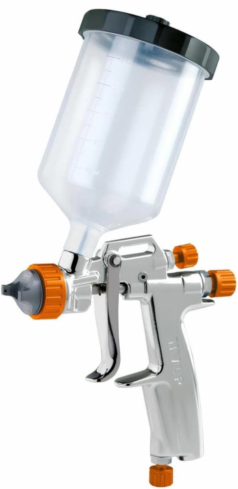 Technologie HVLP (High Volume Low Pressure) zajišťuje vysokou přenosovou účinnost až 65 %, což znamená méně ztrát barvy, nižší znečištění okolí a úsporu nákladů na materiál. Pistole funguje při nižším tlaku, čímž minimalizuje tvorbu mlhy (overspraye) a je tak vhodná i do citlivějších pracovních prostor. Díky tomu se barva dostane přesně tam, kam má – a v požadovaném množství.