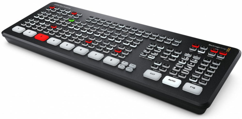 - 4 upstream klíče ATEM Advanced Chroma pro práci se zelenou/modrou obrazovkou.
