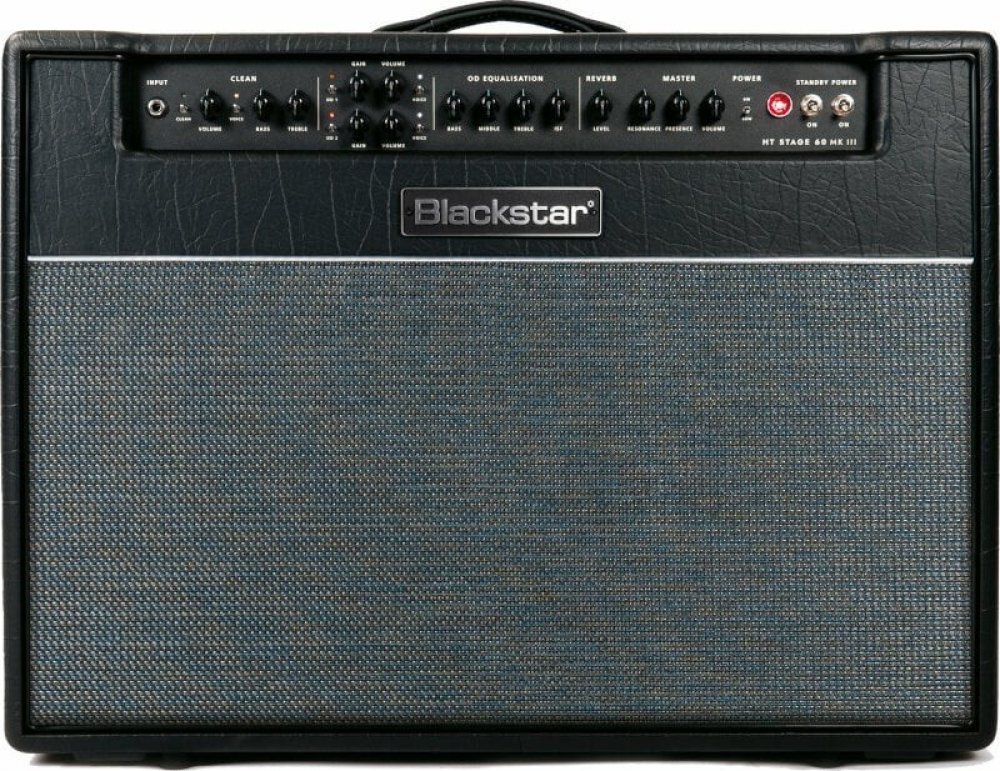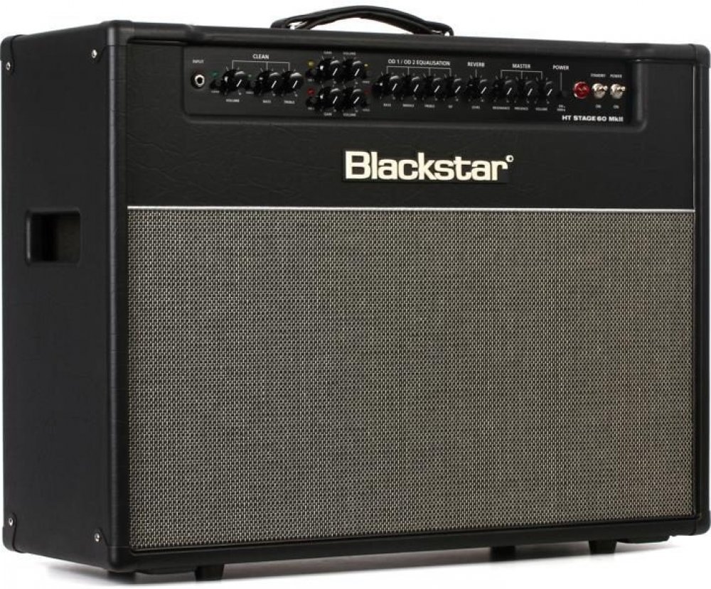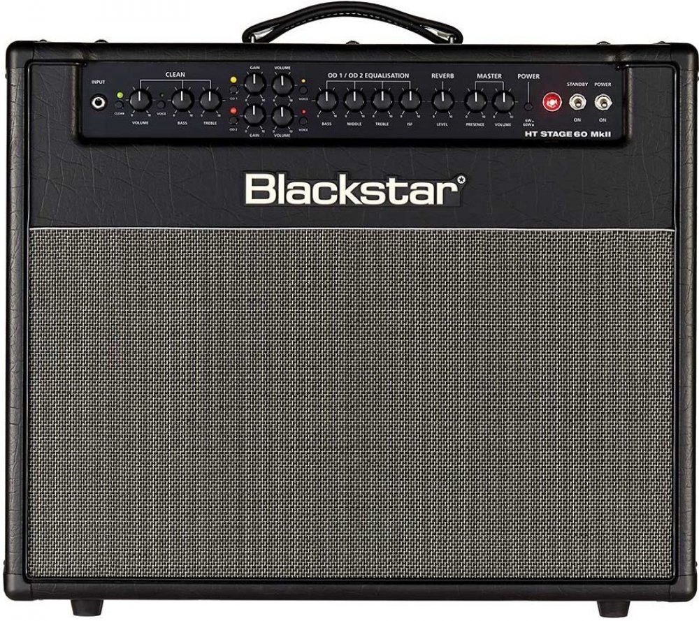 Kytarové lampové kombo Série HT Venue nabízí celolampové kytarové zesilovače, komba a k nim patřící reproboxy, které se vyvinuly z velmi oblíbeného a oceňovaného modelu HT-5. Výrobky z této řady nabízí dostatečný výkon pro hraní v kapelách a nadstandardní výbavu. Pokud bychom měli volit tři základní charakteristiky těchto aparátů, potom bychom jistě zmínili vřelý lampový tón, vysokou všestrannost a maximální spolehlivost. HT Stage 60 112 MkII je univerzální kytarový aparát ve stylovém „butikovém“ designu vhodný k produkci široké škálu hudebních žánrů. Nabízí tři kanály a celkem šest různých zvukových režimů přepínatelných footswitchem. První, čistý, kanál disponuje samostatným ovladačem hlasitosti, dvoupásmovým ekvalizérem a tlačítkem Voice. Jeho stlačením volíte mezi čistým zvukem s úderným basovým spodkem amerických aparátů a britským Class A zvukem. Dva kanály s charakterem overdrive nabízí čtyři různé zvukové režimy, tj. každý disponuje dvěma. Lze je obecně charakterizovat vyšším gainem, který ovšem nezabředá ve vysokých frekvencích do ostrých, nepříjemných, odstínů. Naopak, i při maximálním nastavení gainu si tón zachovává přirozenost a vřelý lampový charakter. Oba kanály mají samostatné ovladače hlasitosti a gainu, sdílejí zvukové korekce v podobě třípásmového ekvalizéru a potenciometru s funkcí ISF (Infinite Shape Feature). Ta umožňuje plynule přecházet mezi zvukem, který odpovídá americkým a britským lampovým zesilovačům. K dobarvení kytarového tónu dobře poslouží přirozeně znějící digitální reverb. Na zadním panelu můžete přepínačem volit mezi dvěma druhy – Dark s charakterem room reverbu a Light vycházejícího z efektu plate reverb. Efekt lze ovládat volitelným pětiknoflíkovým footswitchem. Z dalších funkcí zmíníme přepínač Power s volbou plného a 10% výkonu, USB rozhraní, kterým pošlete do PC či jiného nahrávacího zařízení čtyři zvukové stopy (dry signál, preamp out a stereo emulated out), dva výstupy pro footswitch, send/return efektové smyčky, výstupy do externích reproboxů s impedancí 16/8 ohmů a DI/linkovým výstup s emulací 1x 12/4x 12 reproduktorů. Součástí balení je footswitch FS-15.