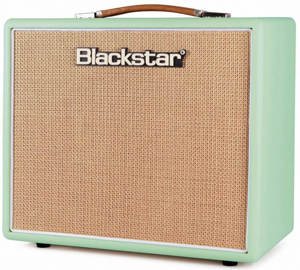 Kytarové lampové kombo Řadu celolampových kytarových komb Studio 10 značky Blackstar rozšiřuje model 6L6 Surf Green v pěkném butikovém designu, o který se stará zelený tolexový potah, čelní průzvučná mřížka ve vzoru basketweave a potenciometry chicken head. Stylový design komba vhodně doplňuje kultivovaný zvuk dvanáctipalcového reproduktoru značky Celestion. Model Studio 10 6L6 nabízí jasný čistý zvuk, tak i dynamický zpěvný rockový crunch s nezaměnitelným americkým charakterem koncové elektronky 6L6 a elektronky ECC83 v předzesilovači. Overdrive obvod komba vychází z ceněného pedálu HT-Drive. Přehledné ovladače na vrchním panelu určují výstupní hlasitost, míru zkreslení, barvu/charakter tónu a poměr zabudovaného efektu reverb ve výsledném zvuku, který ještě můžete „nakopnout“ tlačítkem Drive a dodat mu tak větší šťávu. Zadní panel nabízí sériovou efektovou smyčku pro integraci vašich oblíbených pedálových efektů, výstup pro foostwitch (jednokanálový switch aktivující funkci Boost je součástí balení), výstupy do externích reproboxů (1x 16, 1x 8, 2x 16 Ohmů) a výstup s emulací reproboxů, kdy můžete signál poslat přímo do mixu, nahrávacího zařízení nebo vyvést do sluchátek. Technické údaje: • Rozměry: 473 x 421 x 251 mm • Hmotnost: 14,7 kg • Footswitch: FS-4 součástí, dvoukanálový switch FS-8 (Drive, Reverb) lze dokoupit