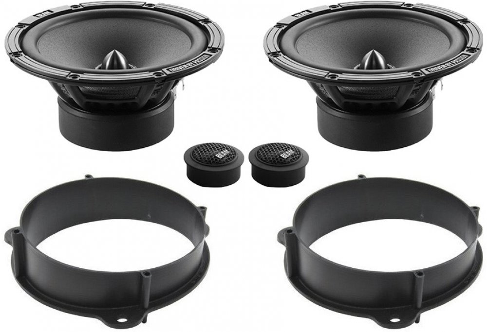 ✅ 1 pár komponentních reproduktorů BLAM RELAX 2 165 R2X (2x středobas, 2x výška, výhybky) ✅ 1 pár plastových podložek přesně pro Mercedes-Benz Citan z roku 2012 do předních dveří (2ks plastových podložek)