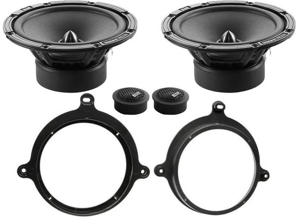 Ohm 1 pár komponentních reproduktorů BLAM RELAX 2 165 R2X (2x středobas, 2x výška, výhybky) Ohm 1 pár plastových podložek přesně pro Mercedes A z roku 1997-2004 do předních dveří (2ks plastových podložek)