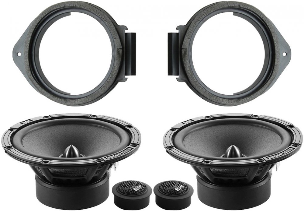 Ohm 1 pár komponentních reproduktorů BLAM RELAX 2 165 R2X (2x středobas, 2x výška, výhybky) Ohm 1 pár plastových podložek přesně pro Opel Astra J z roku 2009-2015 do předních dveří (2ks plastových podložek)