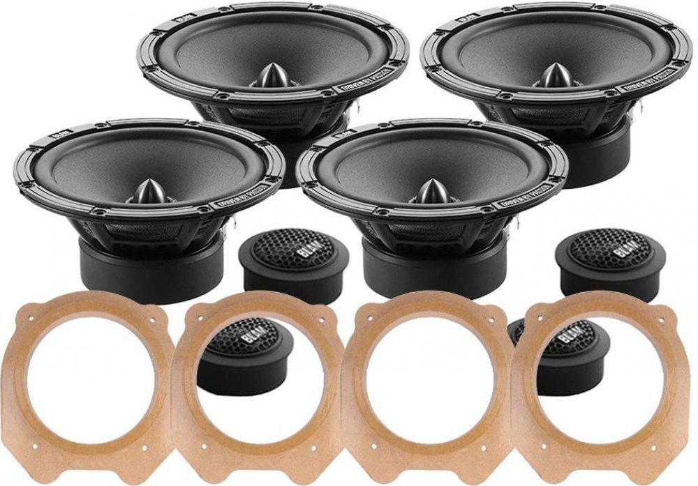 Do zadních dveří: Ohm 1 pár komponentních reproduktorů BLAM RELAX165RX (2x středobas, 2x výška, výhybky) Ohm 1 pár MDF podložek přesně pro Citroen C4 II z roku 2010-2018 do zadních dveří (2ks MDF podložek)