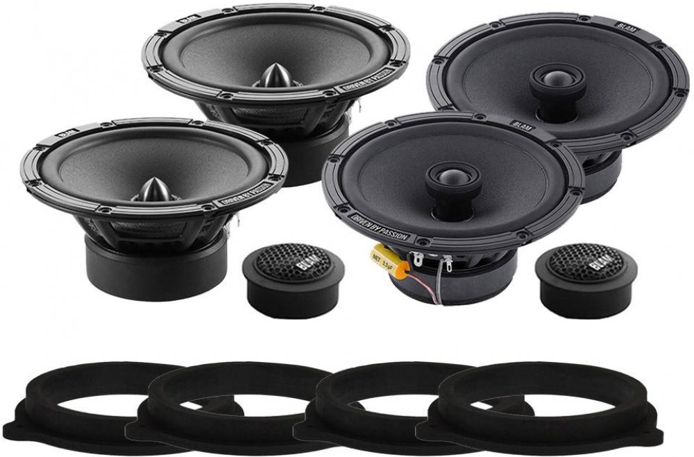 ? 1 pár komponentních reproduktorů BLAM RELAX 2 165 R2X (2x středobas, 2x výška, výhybky) ? 1 pár MDF podložek přesně pro Nissan Juke z roku 2010-2014 do předních dveří (2ks MDF podložek)