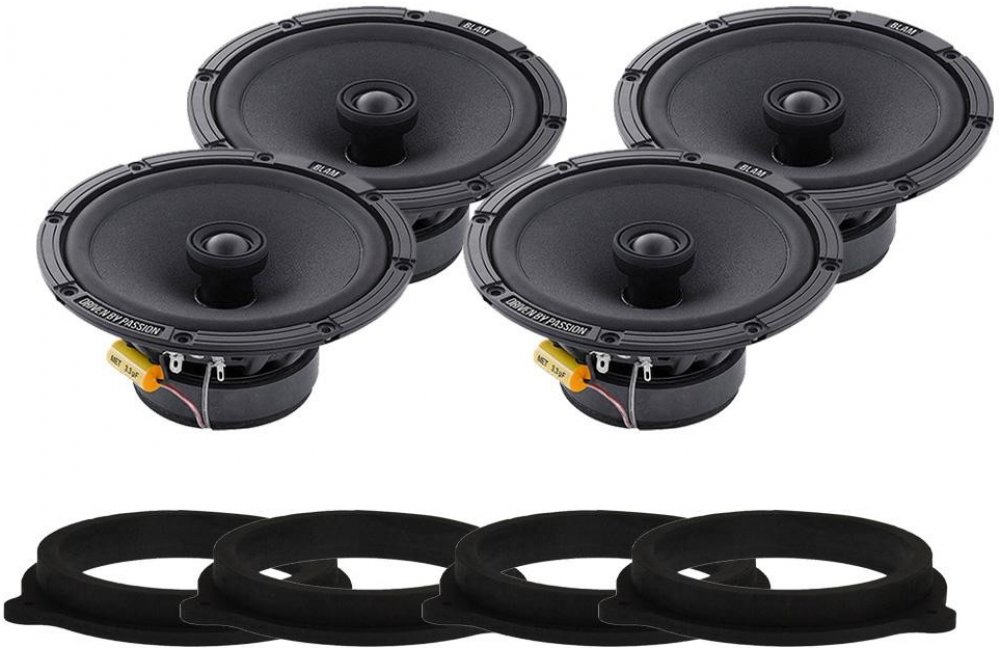 ? 1 pár koaxiálních reproduktorů BLAM Relax 165 RC (2x středobas, 2x výška, výhybky) ? 1 pár MDF podložek přesně pro Nissan Micra z roku 2003-2010 do předních dveří (2ks MDF podložek)