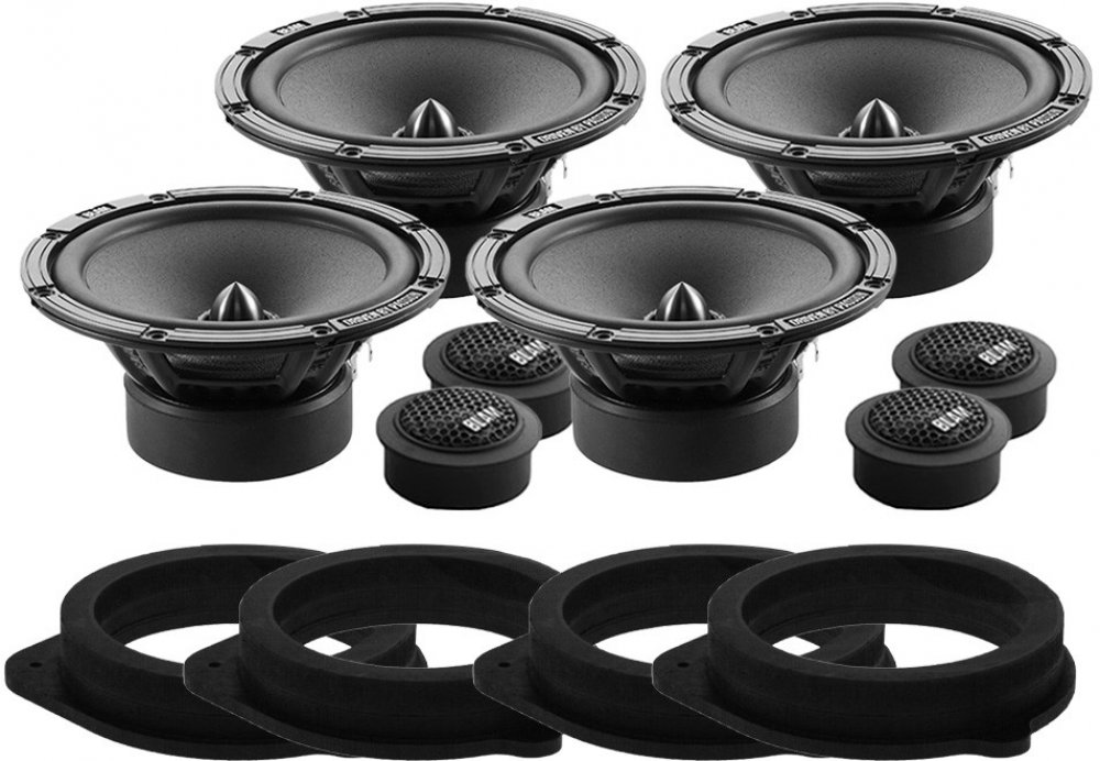 Do zadních dveří: Ohm 1 pár komponentních reproduktorů BLAM RELAX 2 165 R2X (2x středobas, 2x výška, výhybky) Ohm 1 pár MDF podložek přesně pro Audi A4 B7 roku výroby 2005-2008 do zadních dveří (2ks MDF podložek)