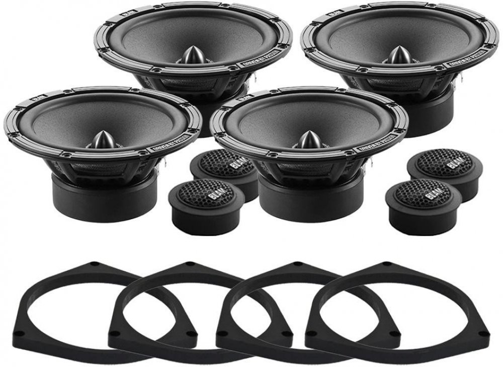 Do zadních dveří: Ohm 1 pár komponentních reproduktorů BLAM RELAX 2 165 R2X (2x středobas, 2x výška, výhybky) Ohm 1 pár MDF podložek přesně pro Audi A6 C5 roku výroby 1997-2004 do zadních dveří (2ks MDF podložek)