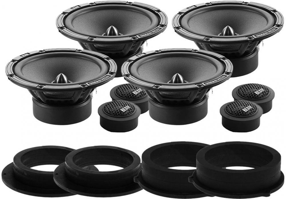 Ohm 1 pár komponentních reproduktorů BLAM RELAX 2 165 R2X (2x středobas, 2x výška, výhybky) Ohm 1 pár MDF podložek přesně pro Audi Q3 roku výroby předních dveří (2ks MDF podložek)