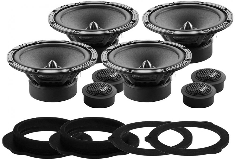 Ohm 1 pár komponentních reproduktorů BLAM RELAX 2 165 R2X (2x středobas, 2x výška, výhybky) Ohm 1 pár MDF podložek přesně pro Ford C-MAX z roku 2003-2010 do předních dveří (2ks MDF podložek)