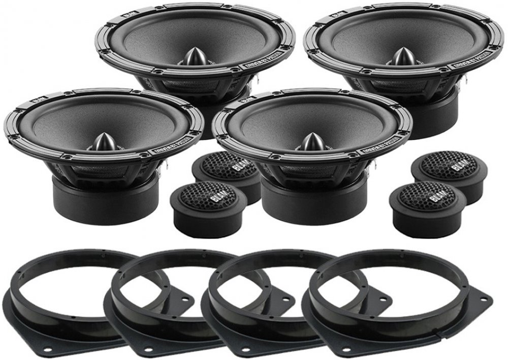 Do zadních dveří: Ohm 1 pár komponentních reproduktorů BLAM RELAX 2 165 R2X (2x středobas, 2x výška, výhybky) Ohm 1 pár plastových podložek přesně pro Toyota Avensis III z roku 2009-2018 do zadních dveří (2ks plastových podložek)