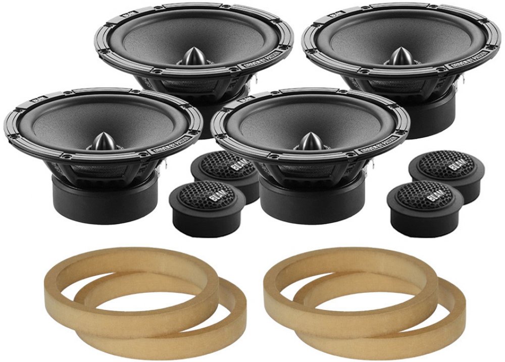 Do zadních dveří: Ohm 1 pár komponentních reproduktorů BLAM RELAX 2 165 R2X (2x středobas, 2x výška, výhybky) Ohm 1 pár MDF podložek přesně pro Volkswagen Sharan z roku 1995-2010 do zadních dveří (2ks MDF podložek)