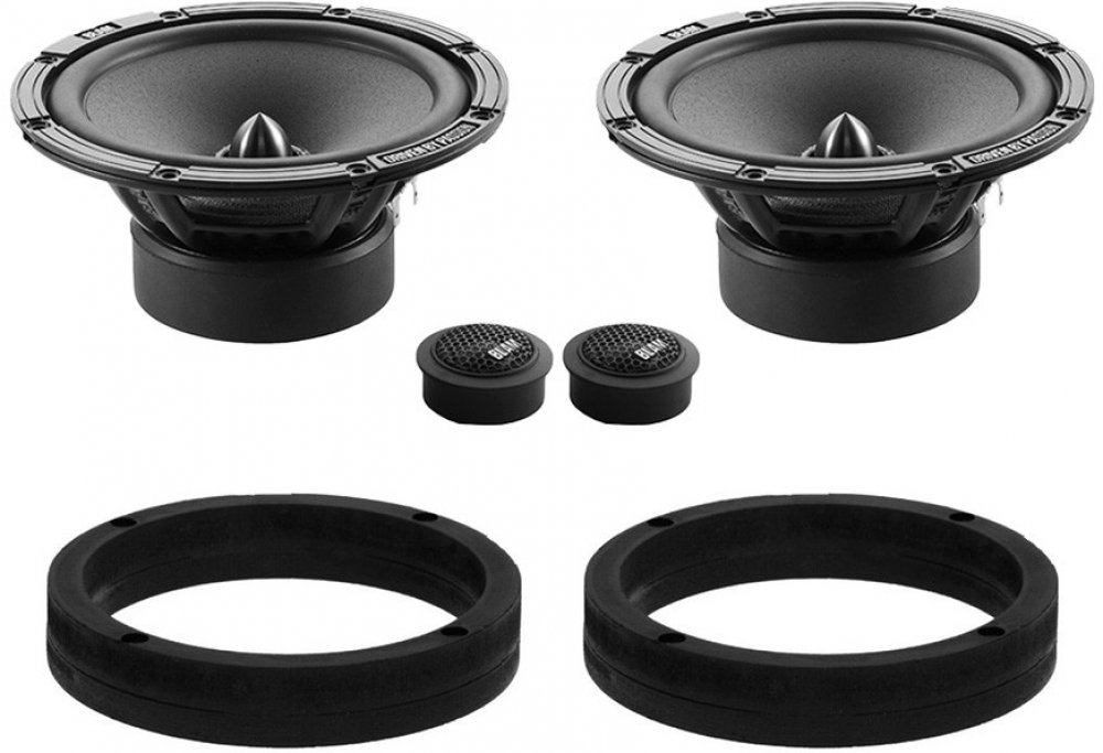 Ohm 1 pár komponentních reproduktorů BLAM RELAX 2 165 R2X (2x středobas, 2x výška, výhybky) Ohm 1 pár MDF podložek přesně pro Škoda Octavia III roku výroby 2013 do předních dveří (2ks MDF podložek)