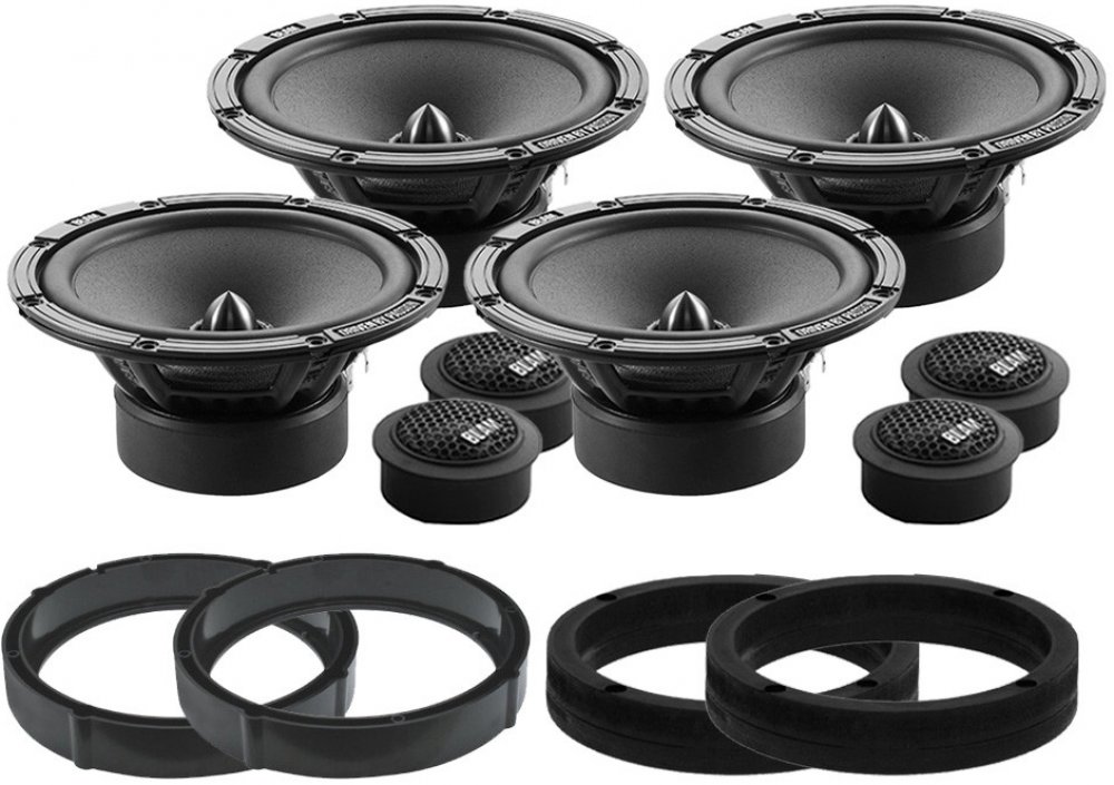 Do zadních dveří: Ohm 1 pár komponentních reproduktorů BLAM RELAX 2 165 R2X (2x středobas, 2x výška, výhybky) Ohm 1 pár MDF podložek přesně pro Škoda Rapid roku výroby 2012-2017 do zadních dveří (2ks MDF podložek)