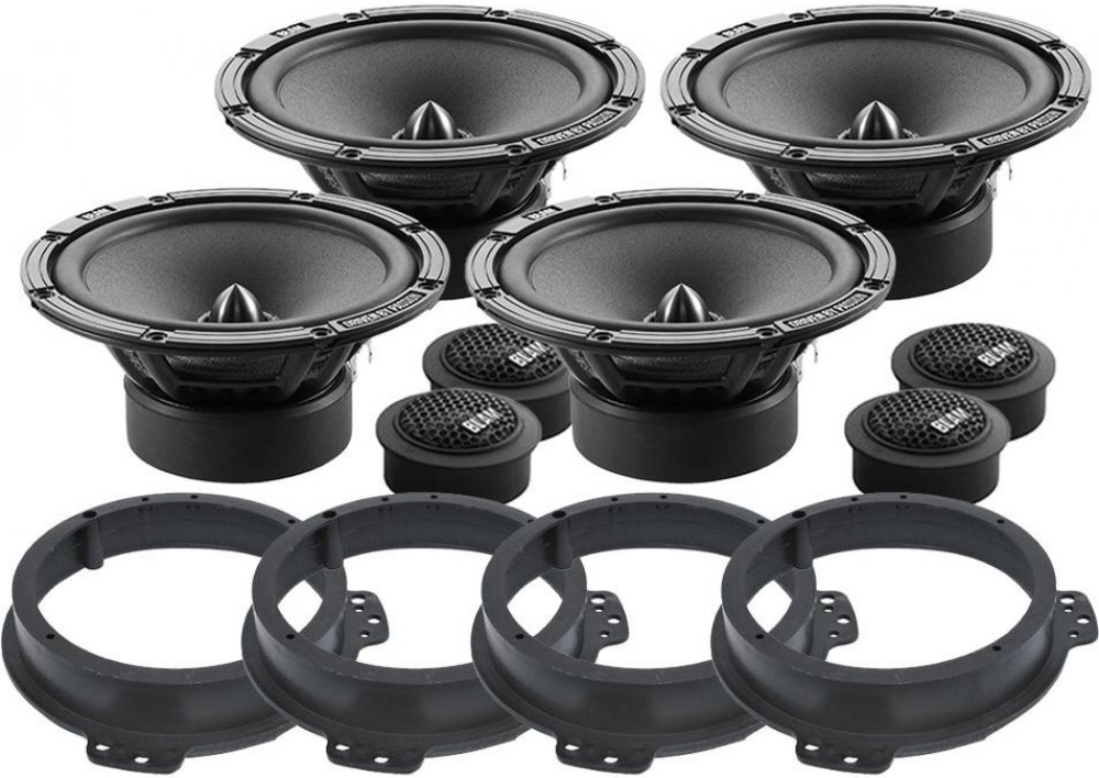 Do zadních dveří: Ohm 1 pár komponentních reproduktorů BLAM RELAX 2 165 R2X (2x středobas, 2x výška, výhybky) Ohm 1 pár plastových podložek přesně pro Mercedes-Benz E z roku 2002-2009 do zadních dveří (2ks plastových podložek)