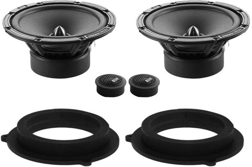 ? 1 pár komponentních reproduktorů BLAM RELAX 2 165 R2X (2x středobas, 2x výška, výhybky) ? 1 pár MDF podložek přesně pro Fiat Panda II z roku 2003-2012 do předních dveří (2ks MDF podložek)