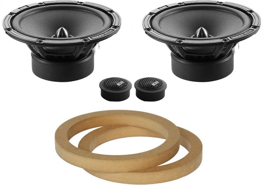 Ohm 1 pár komponentních reproduktorů BLAM RELAX 2 165 R2X (2x středobas, 2x výška, výhybky) Ohm 1 pár MDF podložek přesně pro Volkswagen T-Roc z roku 2017 do předních dveří (2ks MDF podložek)