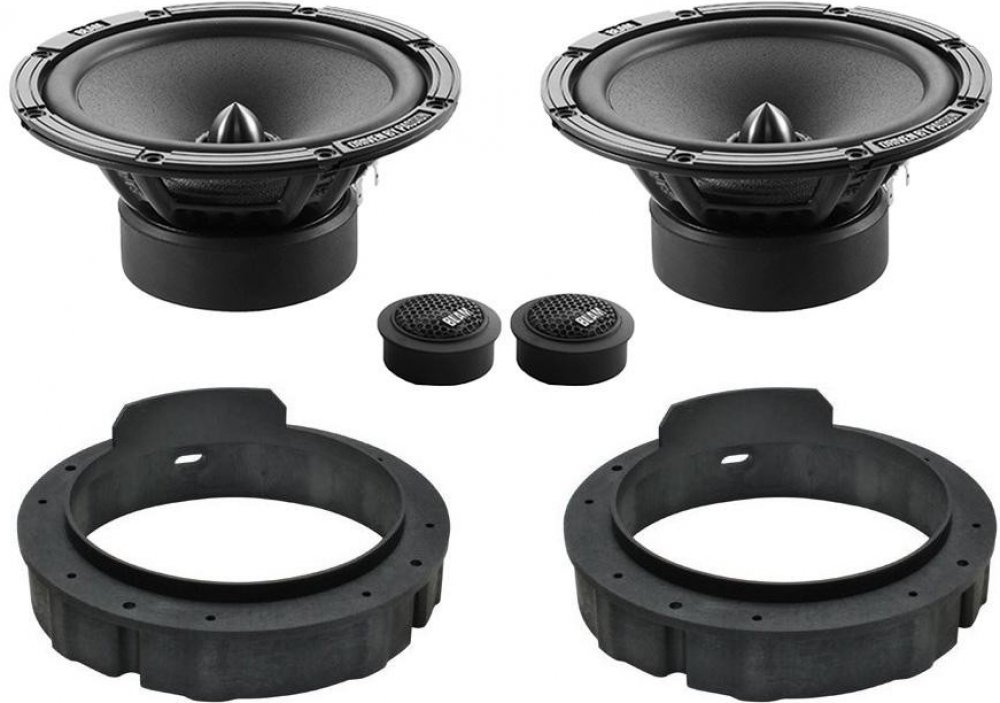 Ohm 1 pár komponentních reproduktorů BLAM RELAX 2 165 R2X (2x středobas, 2x výška, výhybky) Ohm 1 pár plastových podložek přesně pro Volkswagen Tiguan II z roku 2016 do předních dveří (2ks plastových podložek)