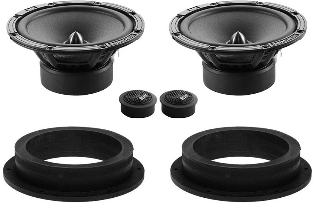 ✅ 1 pár komponentních reproduktorů BLAM RELAX 2 165 R2X (2x středobas, 2x výška, výhybky) ✅ 1 pár MDF podložek přesně pro Volkswagen Touran z roku 2003 do předních dveří (2ks MDF podložek)