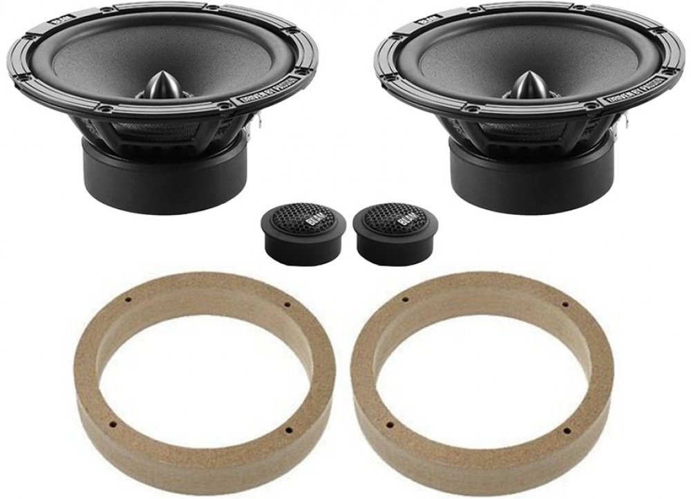 ✅ 1 pár komponentních reproduktorů BLAM RELAX 2 165 R2X (2x středobas, 2x výška, výhybky) ✅ 1 pár MDF podložek přesně pro Volkswagen Golf VI z roku 2009-2012 do zadních dveří (2ks MDF podložek)