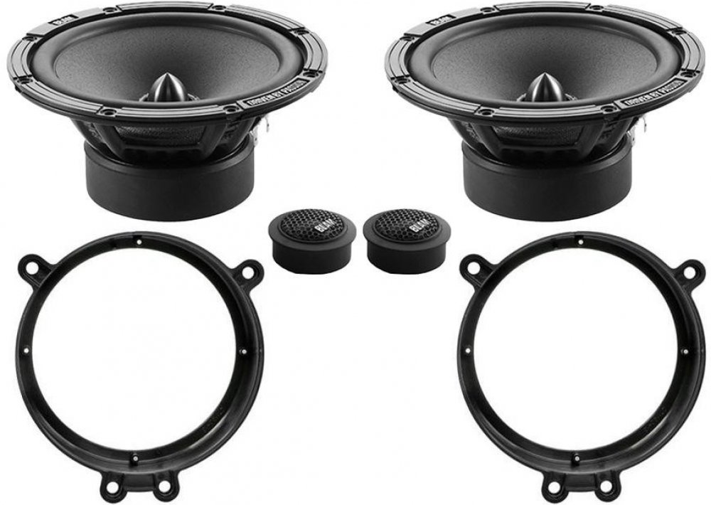 Ohm 1 pár komponentních reproduktorů BLAM RELAX 2 165 R2X (2x středobas, 2x výška, výhybky) Ohm 1 pár plastových podložek přesně pro Mercedes-Benz CLK z roku 2000-2009 do předních dveří (2ks plastových podložek)