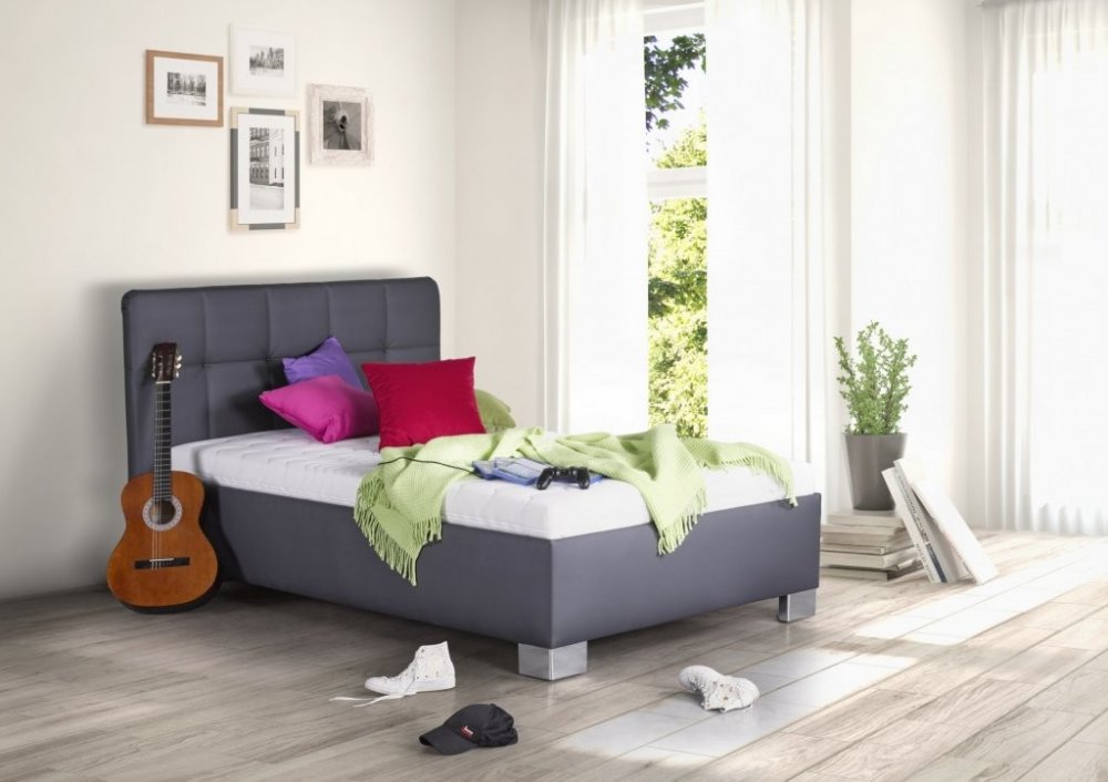 Barevné provedení postele KELLY: šedá barva několika nabízených odstínech v jednobarevné nebo variantě se vzory.