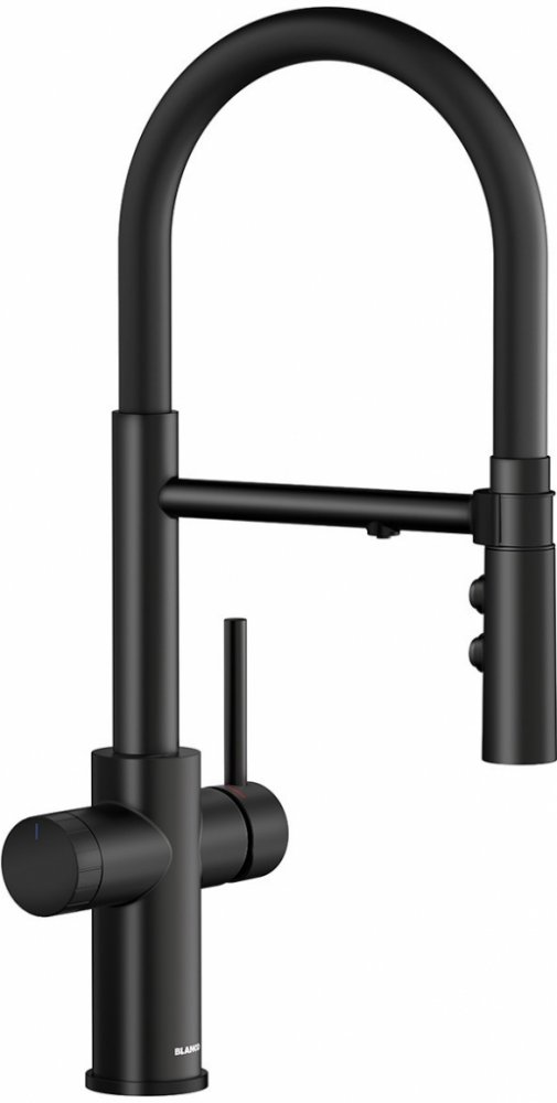 - Oddělené ovládání pro studenou a teplou vodu vpravo, pro filtrovanou vodu páka vlevo