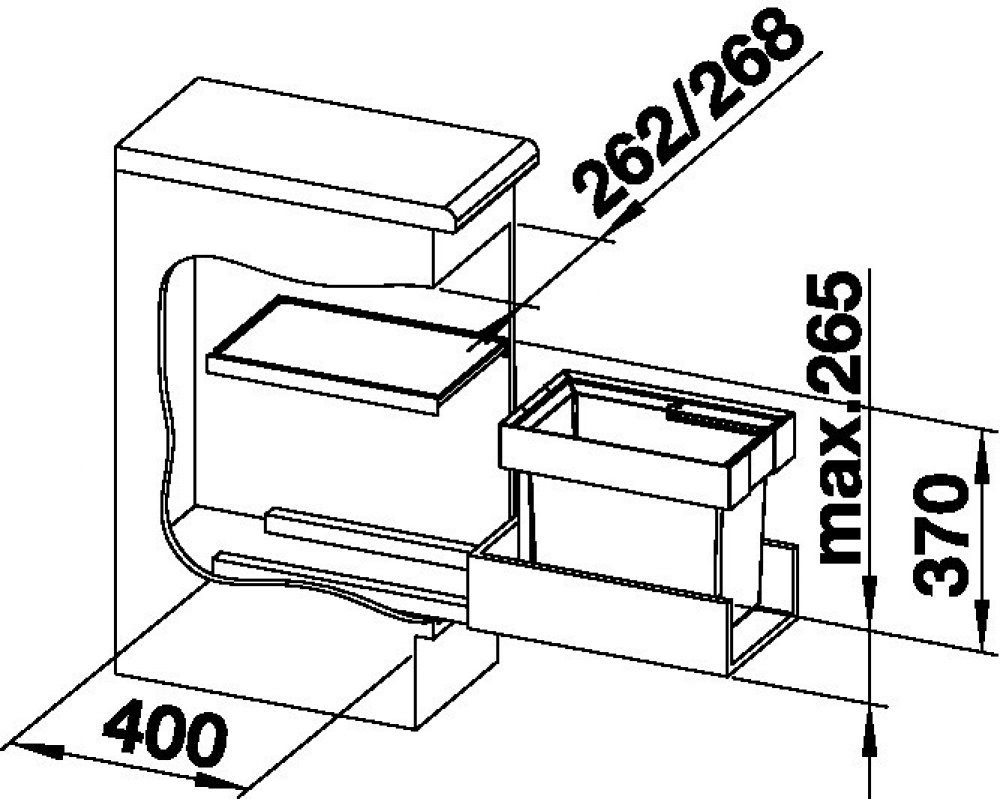 antracitové 40 cm 10 kg hliník / plast 19 l 26.8 cm Blanco 37 cm výsuvné