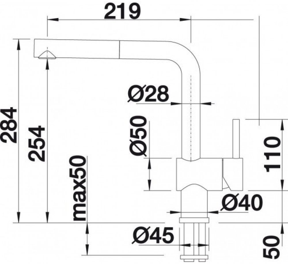 Blanco stojánkové dřezové kuchyňské černé pákové 35 mm mosazné minimalistické