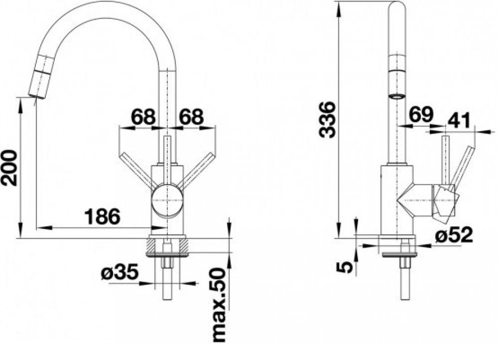 Blanco stojánkové kuchyňské černé 35 mm mosazné moderní