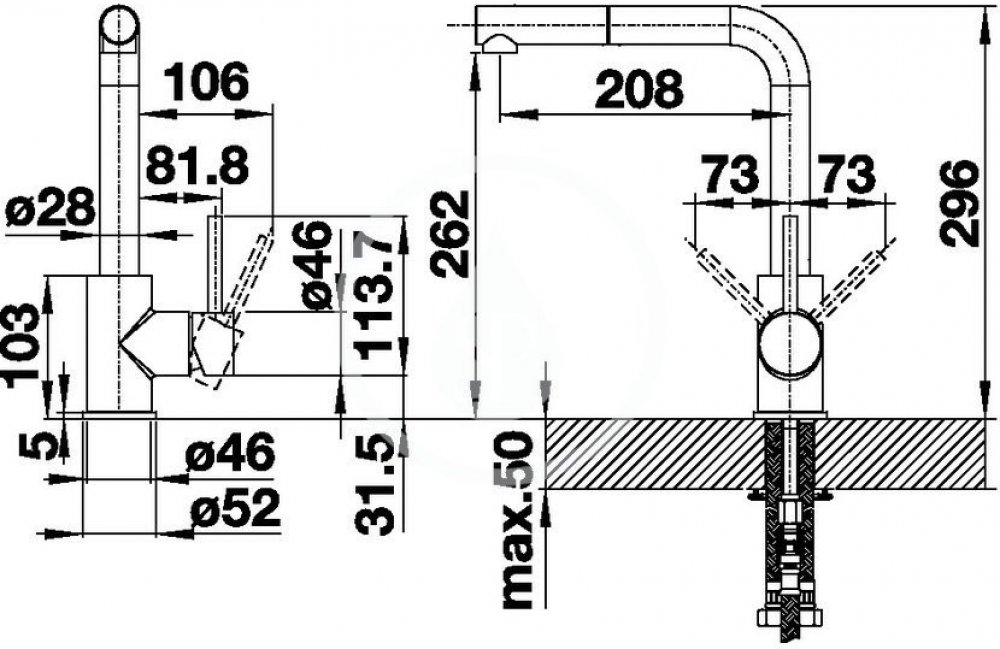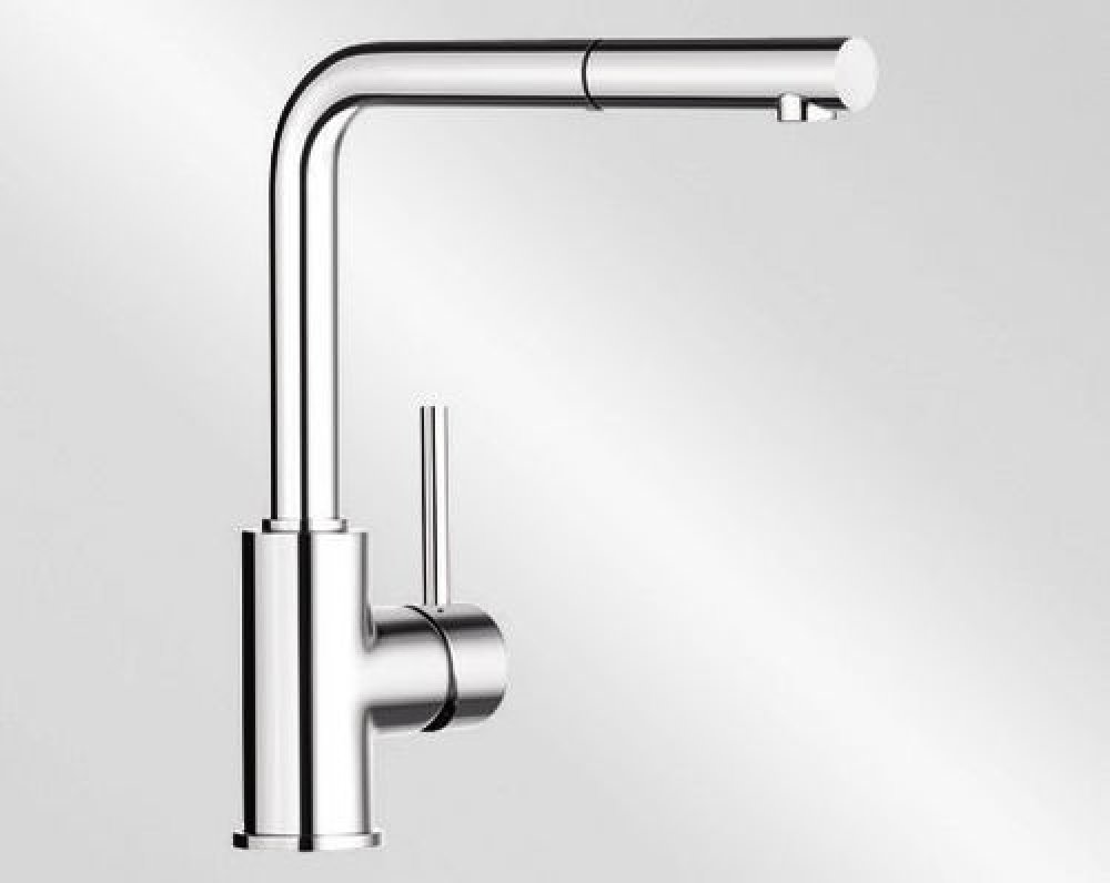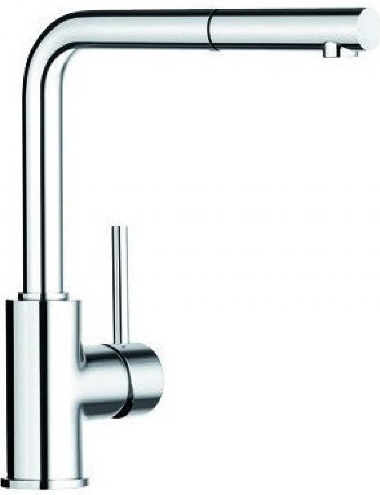 BLANCO Mila-S dřezová baterie s výsuvnou sprchou chrom 519810 minimalistický design výše uložen odtok vody pro snadnější naplnění hrnců a váz rozšířený akční rádius: o 360 ° otáčivý odtok páka baterie může být variabilně umístěna nalevo nebo napravo