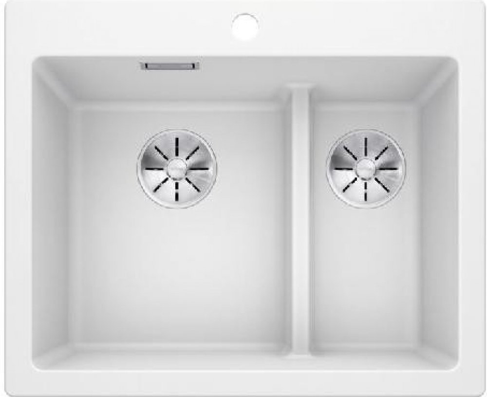 Kuchyňský dřez Pleon 6 Split barva bílá materiál SILGRANIT® PuraDur® určeno pro horní montáž minimální rozměr skříňky 600 mm 1 otvor pro baterii 1 předfrézovaný otvor k vyražení celkový rozměr 615 x 510 mm rozměr hlavního dřezu 366,5 x 400 mm rozměr menšího dřezu 185 x 400 mm hloubka dřezů 220 mm bez odkapávací plochy bez excentrického (dálkového) ovládání výpusti přepad C-overflow průměr odpadu 3...