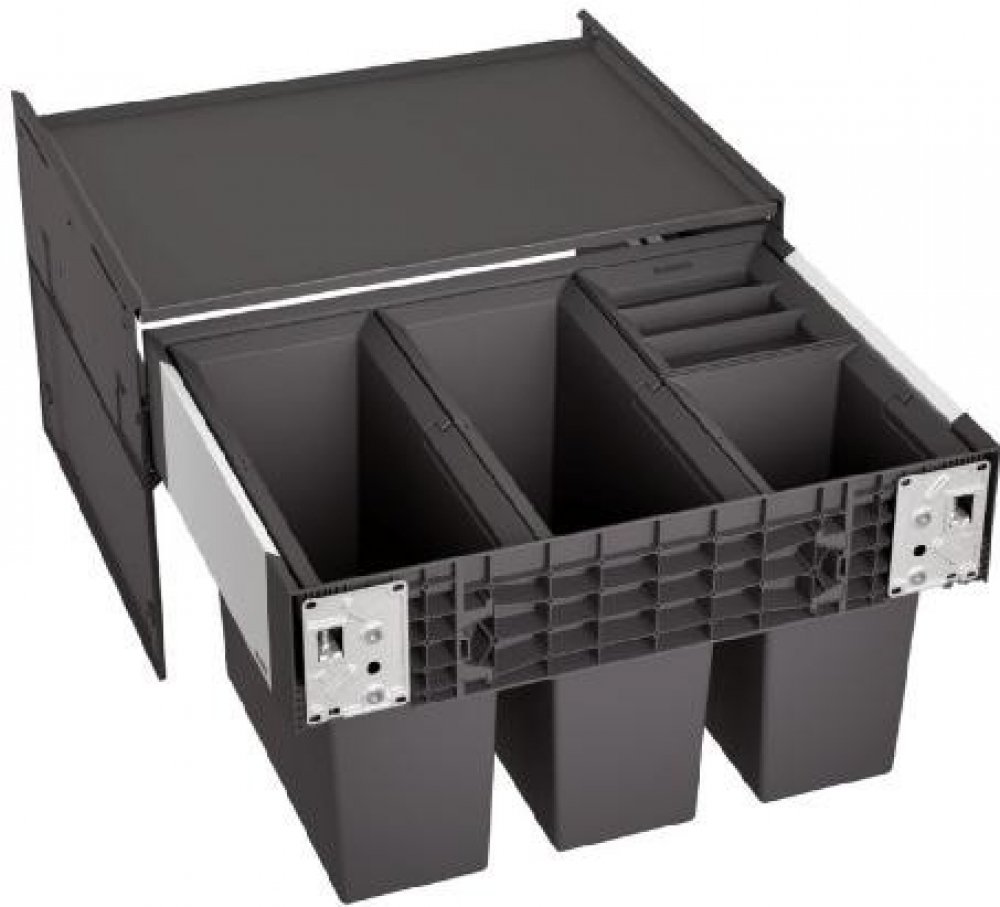 Košový systém Select s čelním výsuvem - dvířka se montují přímo na koš, pro skříňku 60 cm, nádoby 2 x 15 l + 2 x 6 l, rozměr 568 x 450 x 361 mm. Součástí je výsuvné víko koše, které slouží zároveň jako police. 526206, 526206_BLA