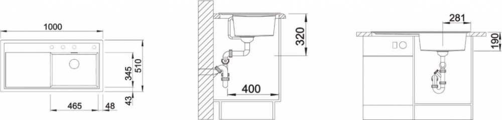 100 cm 19 cm granitové Blanco levý 600 mm horní hladký