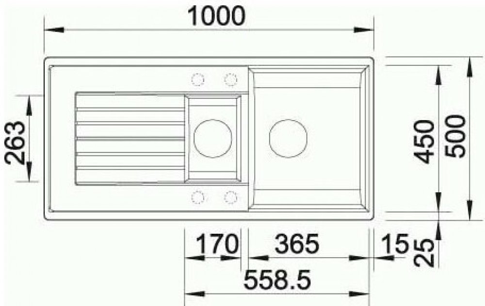 100 cm 19 cm granitové Blanco oboustranný 600 mm horní hladký