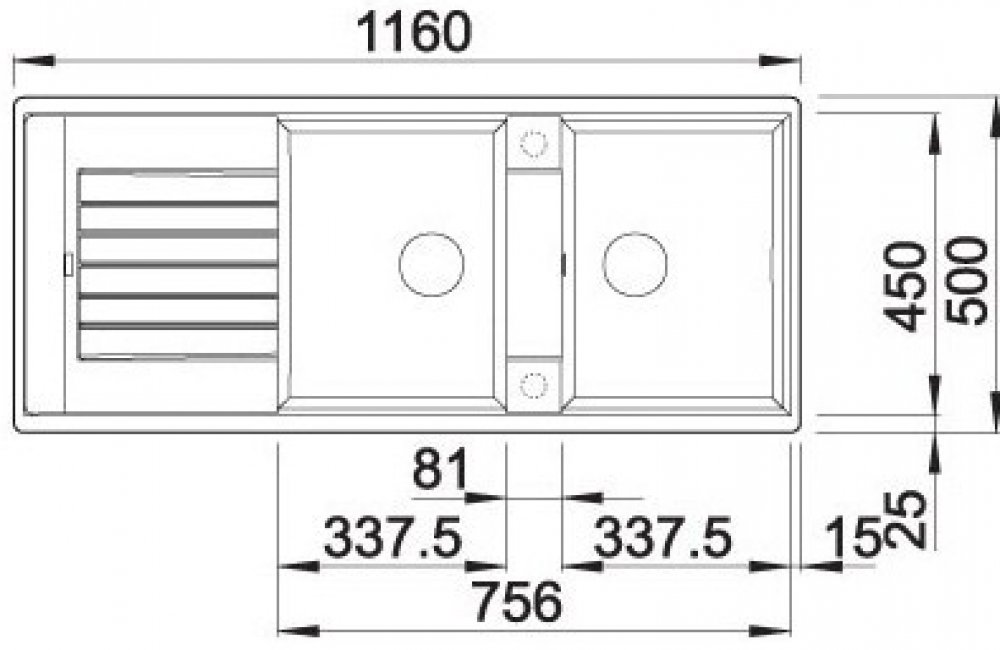 - Rozměr dřezu: 1160 x 500 mm