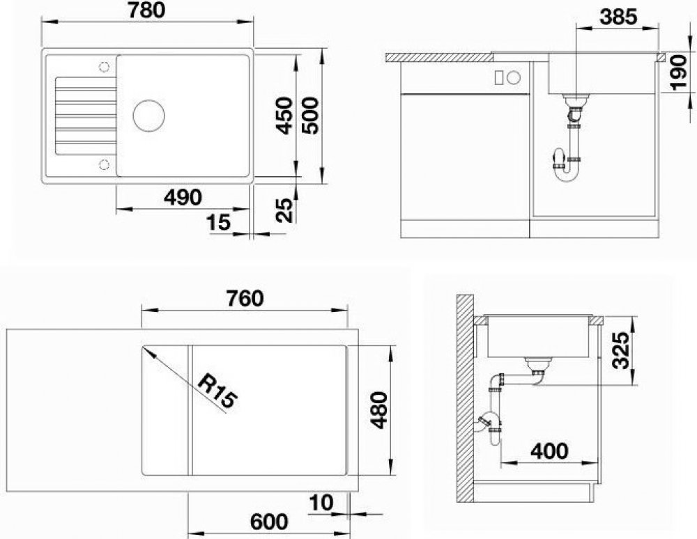 Rozměr dřezu: 780 x 500 mm