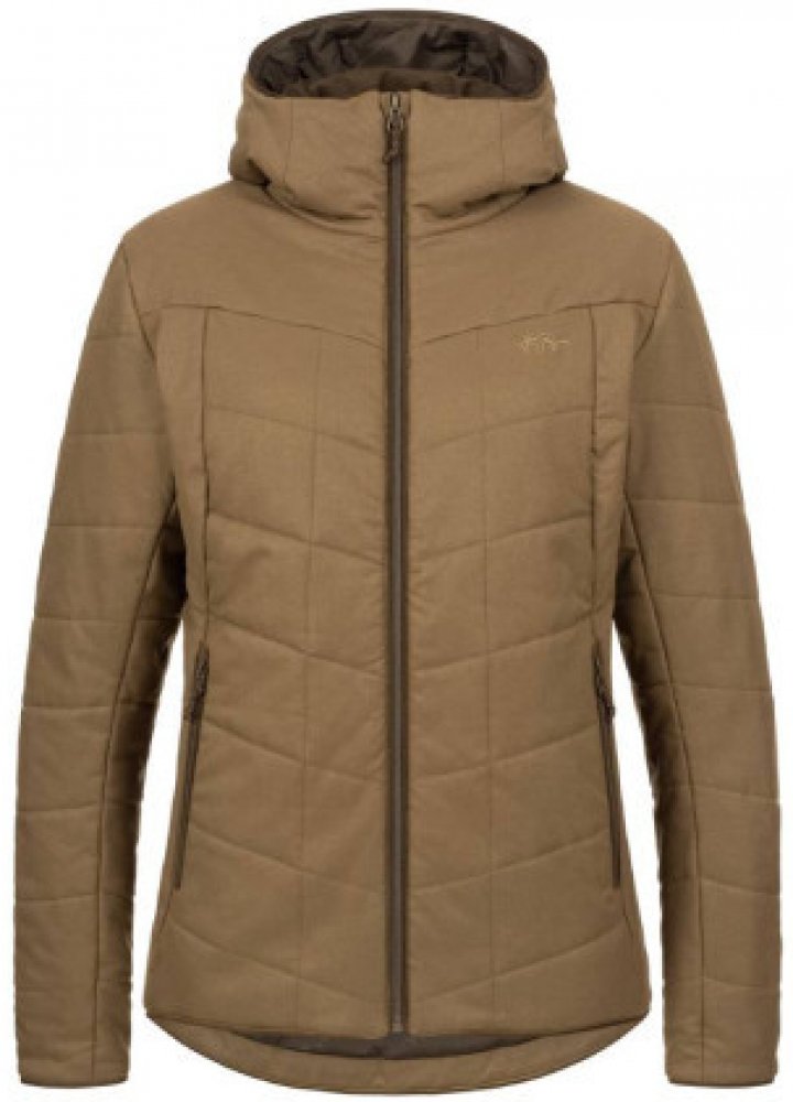Lehká, strečová bunda dámského střihu v hnědozelené melanži s vodoodpudivou povrchovou úpravou je velmi vkusně štepovaná. Podšívka v horní části bundy je elastická, což zvyšuje komfort při nošení. Bunda má kapuci, kterou nelze odepnout. Celá je lehce zateplená, ideální pro první chladné dny. V přední dolní části nechybí dvě kapsy na zip, které jsou stejně jako dolní okraj bundy, okraje rukávů a celý zip, lemované tmavě hnědou, semišovou paspulkou. Semišové vsazení zdobí vnitřní kapuci.StrečováHřejiváVodoodpudivá úprava