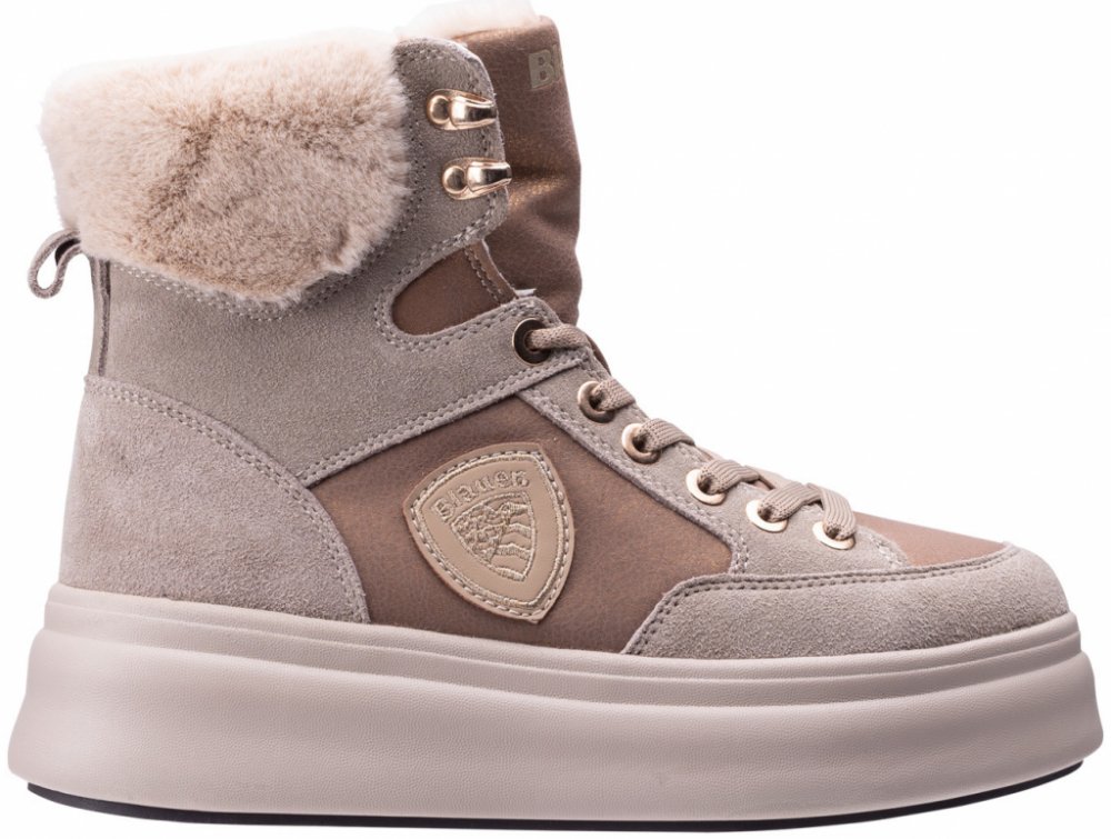 Dámské zimní boty EMERY-SHE BLAUER jsou ideální pro náročné zimní podmínky. Kombinace svrchního materiálu z semišové kůže, syntetického a textilního materiálu zajišťuje dlouhodobou odolnost a elegantní vzhled. Pohodlná textilní vložka s vyjímatelnou vložkou zajišťuje maximální komfort při každém kroku. Vnější podrážka je vyrobena z MD a guma, což poskytuje dobrý úchop na kluzkých podkladech. Model navrchu má šněrování s kovovými háčky a podélně zvýšený hrdlo zakončené kožešinkou. Toto designové provedení nejen zlepšuje vlastnosti izolace, ale také dodává botám styl a eleganci. Podrážka s tloušťkou 5 cm poskytuje další izolaci a chrání chodidla před chladem, zatímco smyčka na zadní straně usnadňuje oblékání a svlékání bot. Tento model bot je dokonalou kombinací funkčnosti a módní elegance. Jeho kvalitní provedení a praktické detaily z něj dělají ideální volbu pro zimní sezónu.