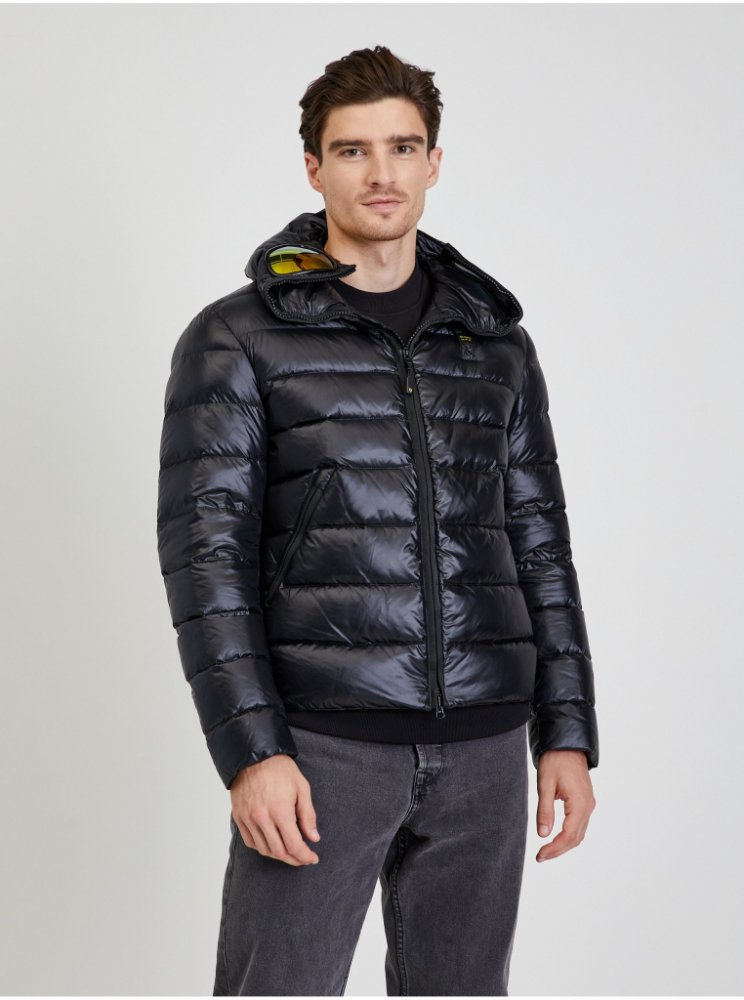 Blauer pánská péřová bunda s polarizačními brýlemi černá