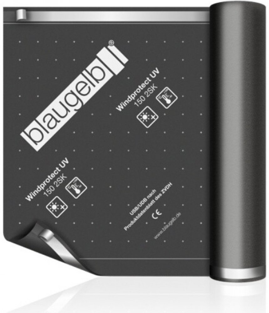 blaugelb Windprotect UV 150 2SK je vysoce spolehlivá, paropropustná a odolná střešní membrána pro všechny typy šikmých střech. Kombinuje nízkou Sd-hodnotu, vysokou pevnost, integrované lepené spoje a rychlou montáž. Je ideální volbou pro kvalitní střechy, kde je požadována dlouhodobá funkčnost, bezpečné odvádění vlhkosti a větrotěsnost celé konstrukce.