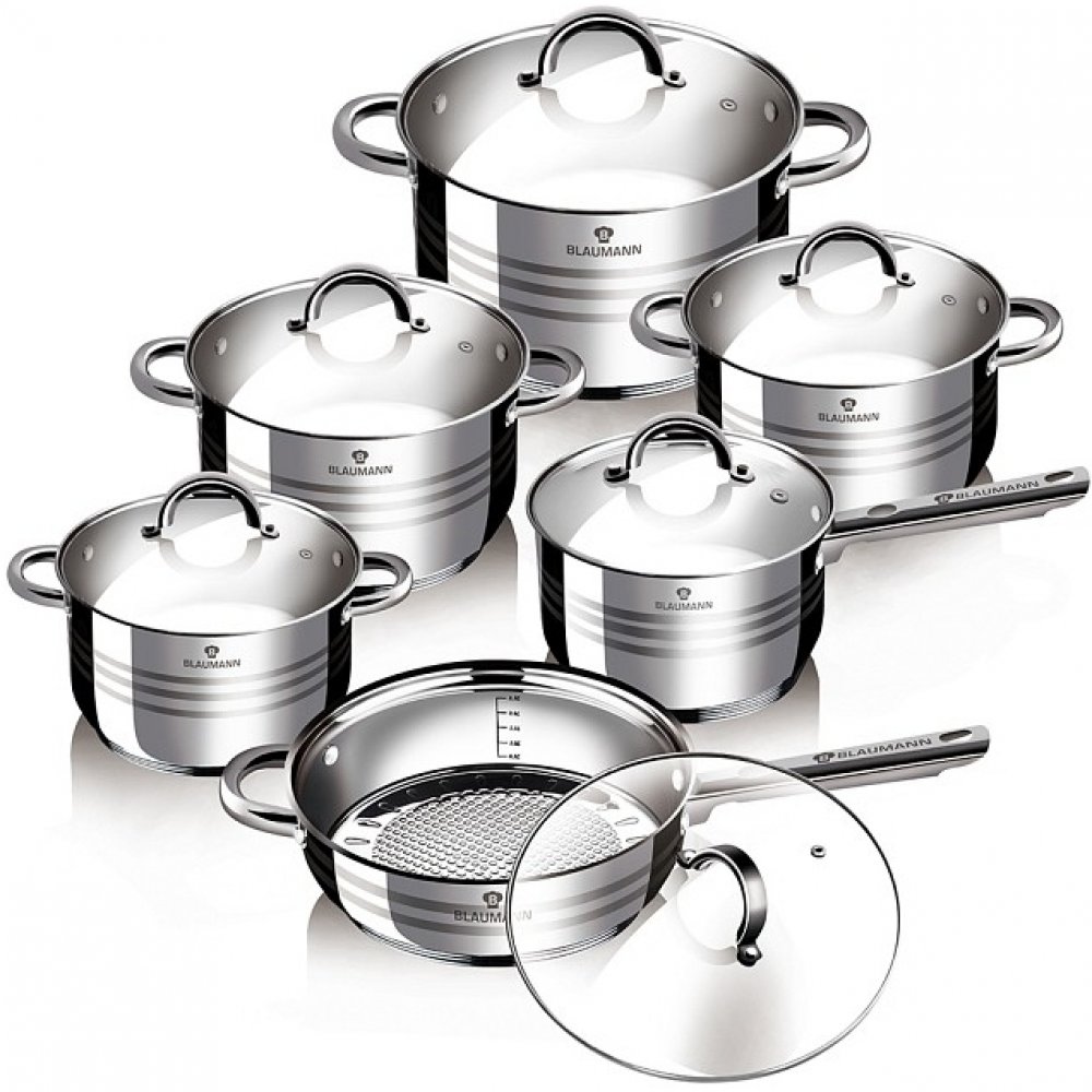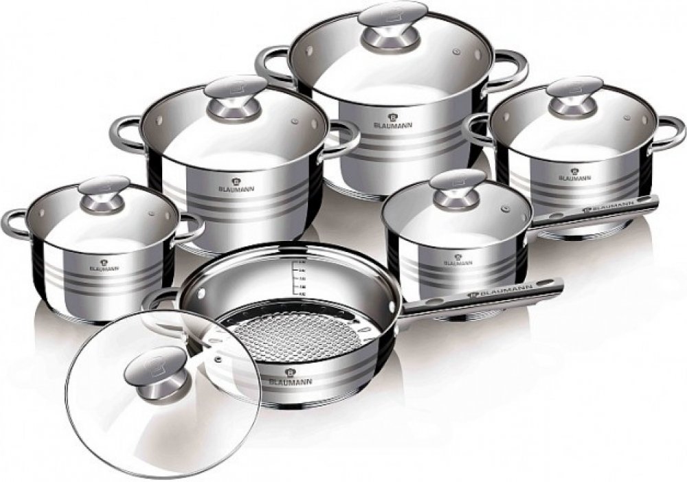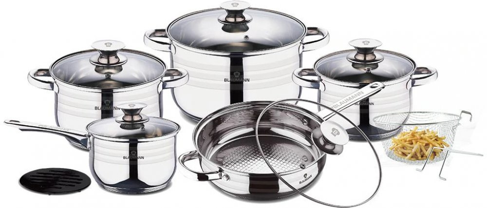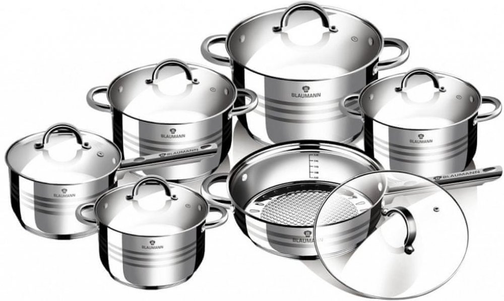 Bohatě vybavená sada nerezového nádobí od značky Blaumann. Díky pevné konstrukci se všechny hrnce i pánve řady Gourmet Line mohou pochlubit vynikající tepelnou vodivostí i rychlým ohřevem v troubě - pro vždy dokonalé výsledky při vaření i pečení. V troubách zvládne nádobí teploty až do 220°C. Hrnce i pánve z řady Gourmet lze použít na všechny druhy sporáků a lze je libovolně kombinovat i s jednotl...