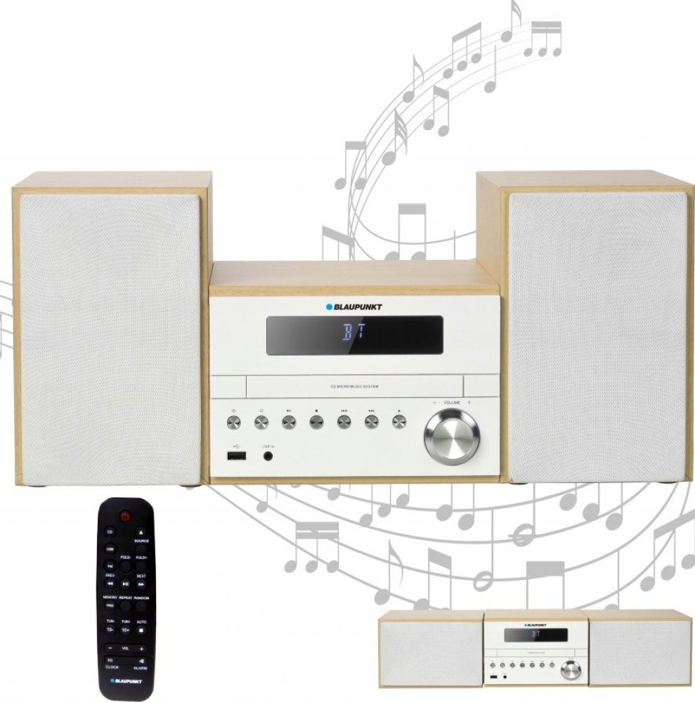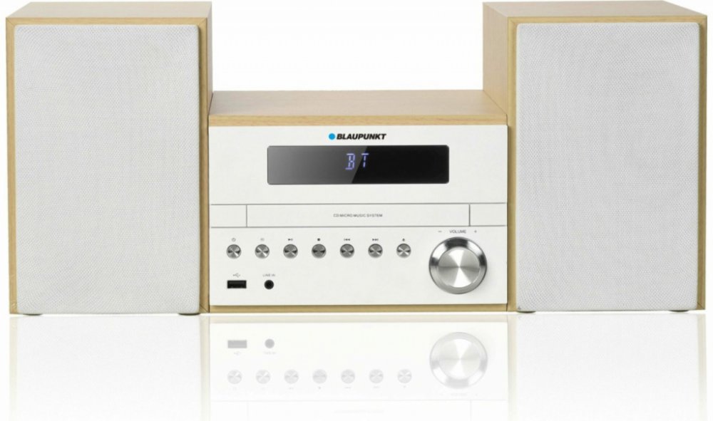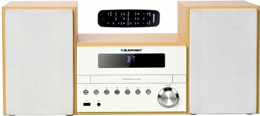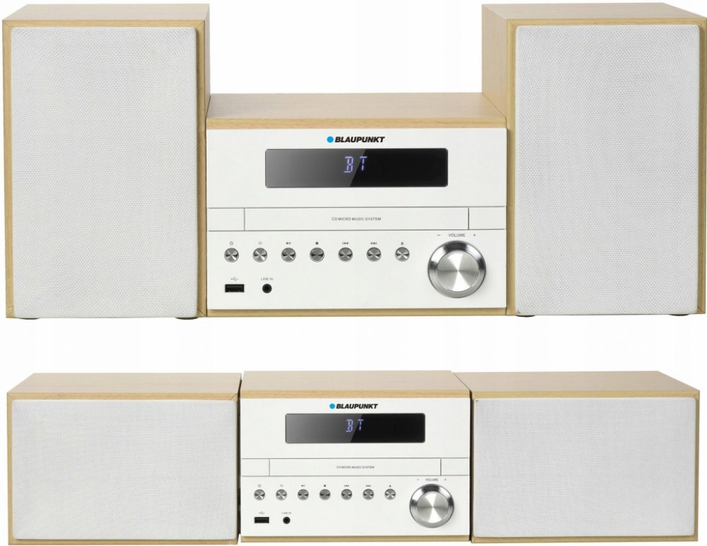 mikro Blaupunkt s externími reproduktory 2.0 stereo pro vyvážený neutrální zvuk 100 W pro střední místnost (15–30 m²) 1 CD-DA, MP3, WMA 50 AUX, Bluetooth, USB 23 cm 13 cm 22.0 cm 20.3 cm 13.4 cm 5.8 kg