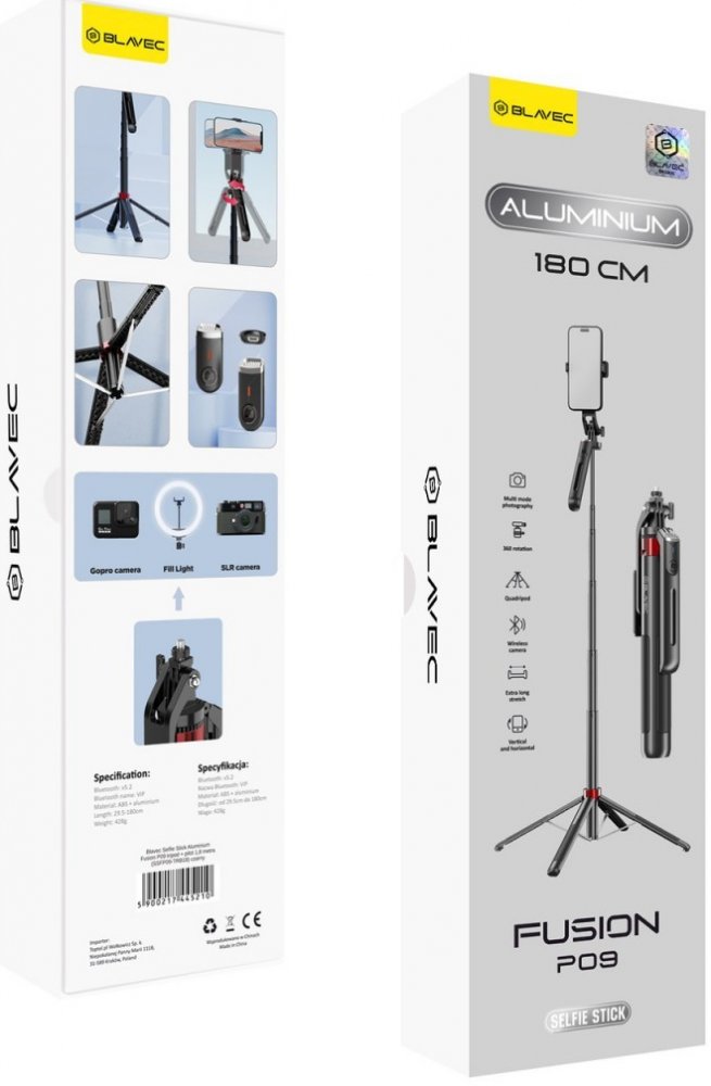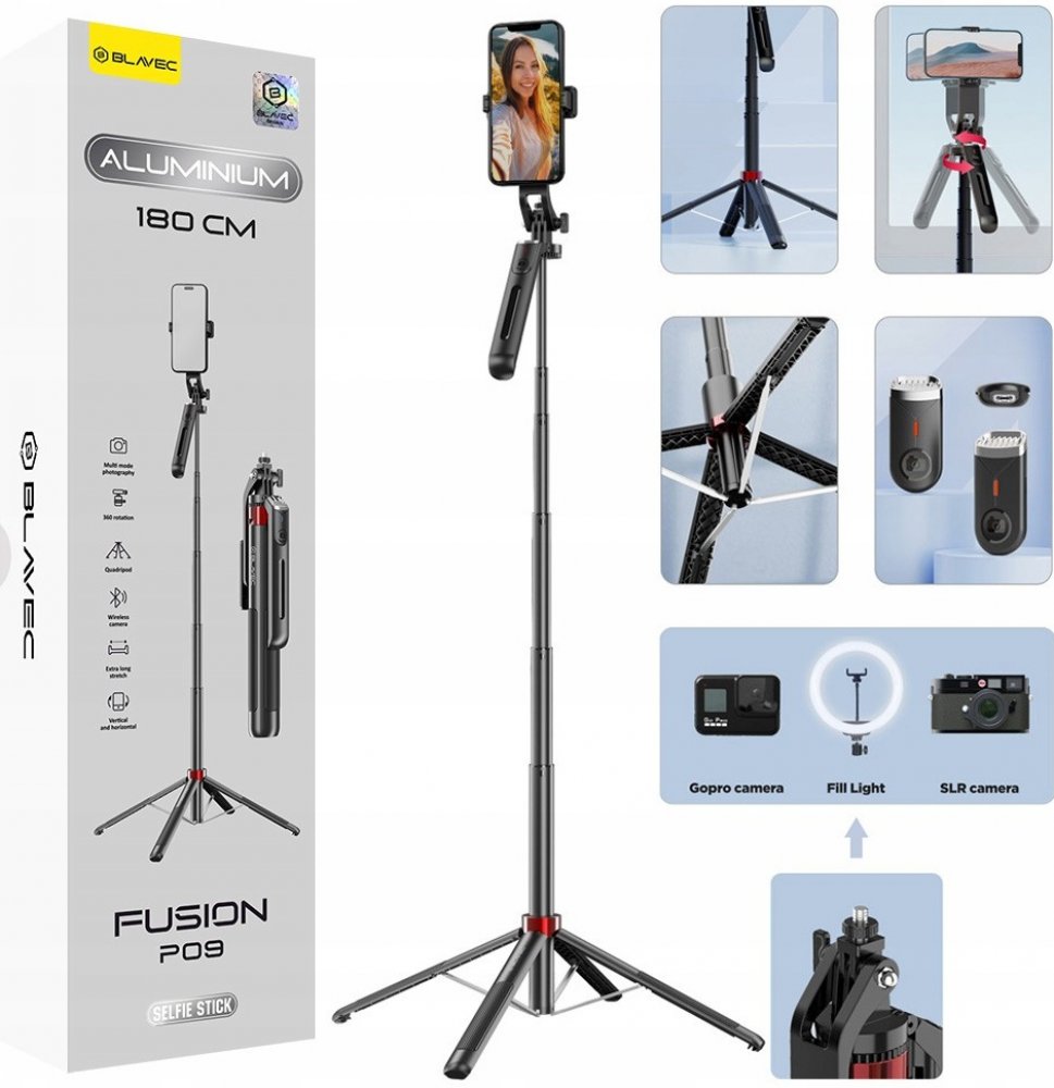 Blavec Selfie Stick Aluminium Fusion P09 tripod + dálkové ovládání 1,8 metru